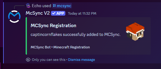Now that we know your Twitch and Discord accounts are linked together, you can run the /mcsync